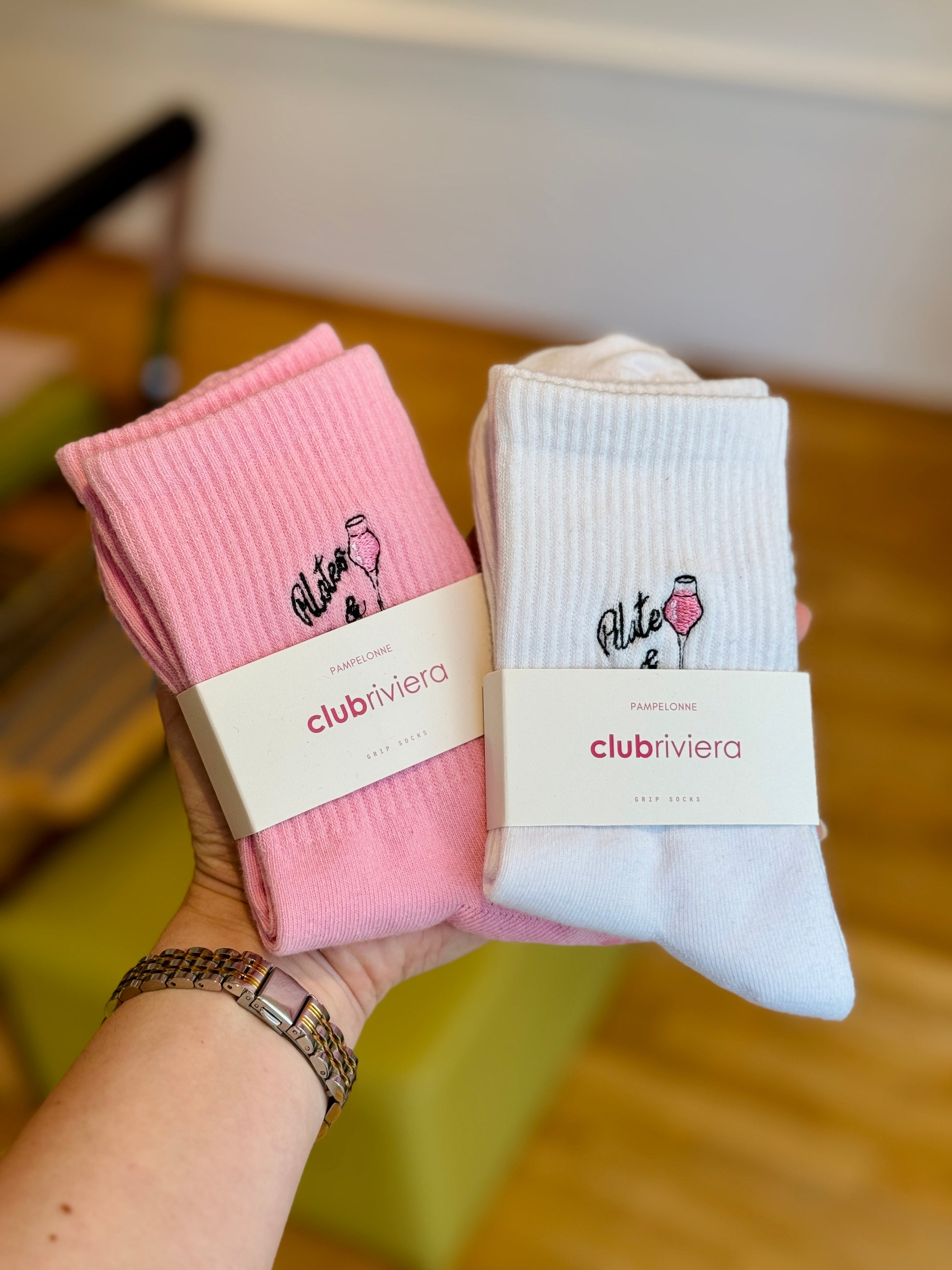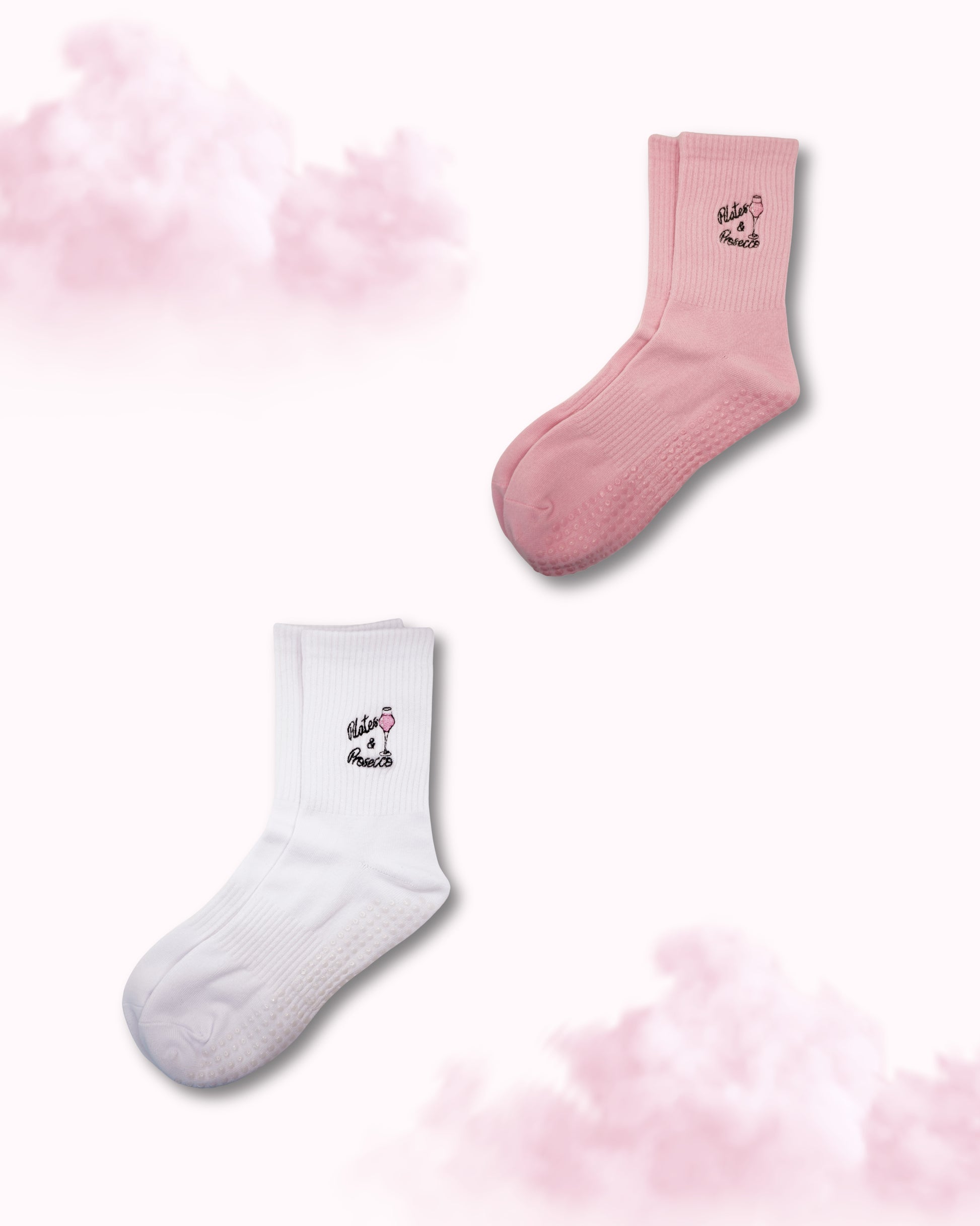 Pampelonne Crew Grip Socks - 1 White & 1 Pink